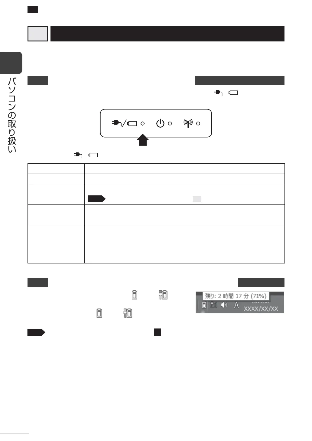 電源コードとACアダプターを接続している場合、DCIN/Battery / LEDが点灯しま