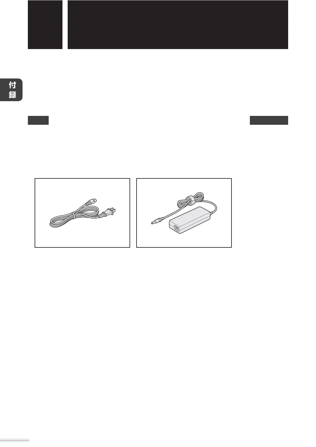 電源コード、ACアダプターは、購入されたモデルにより異なります。