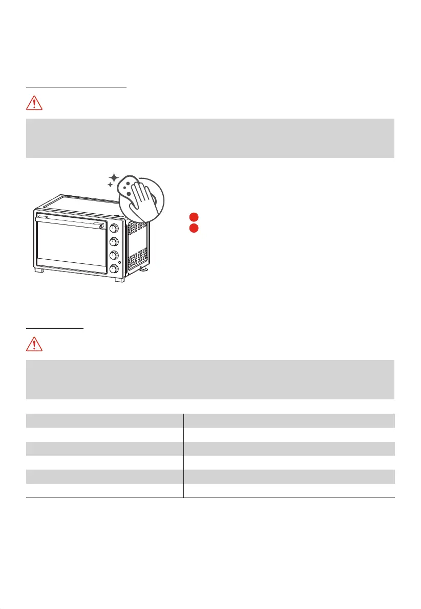 清潔前,拔下插頭並等待焗爐冷卻後再繼續。