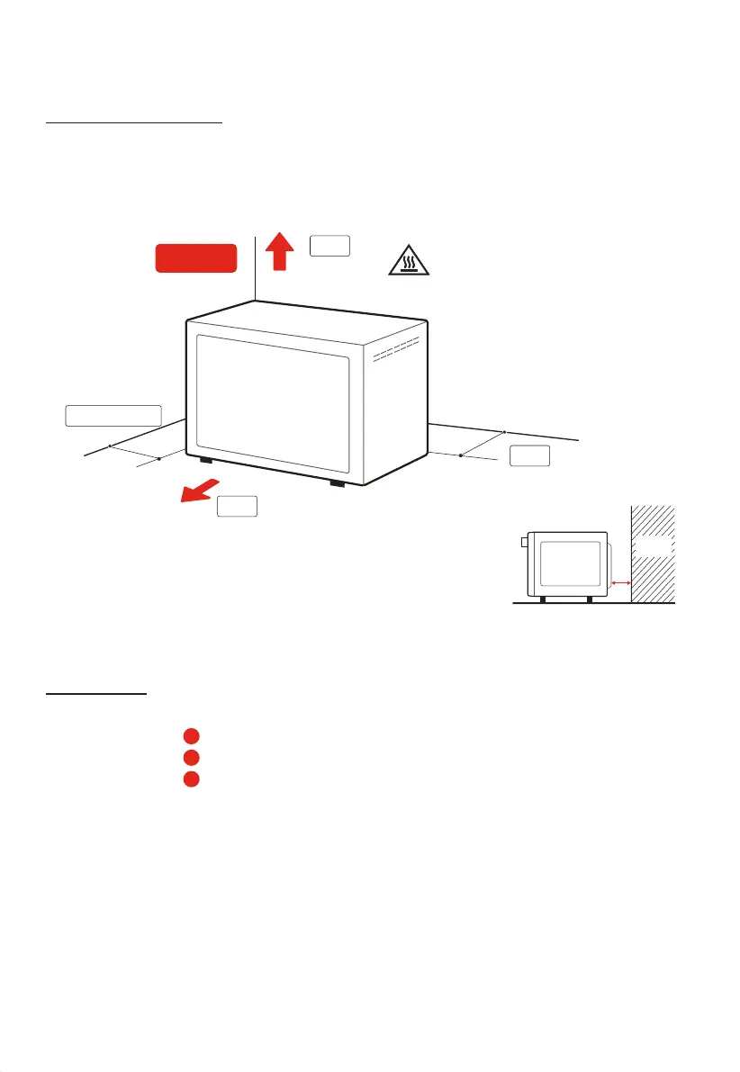 • 為避免焗爐在運作時的煙塵污染家具,或發熱時引起火災,故此須與牆壁和櫥櫃保持一定的距離。