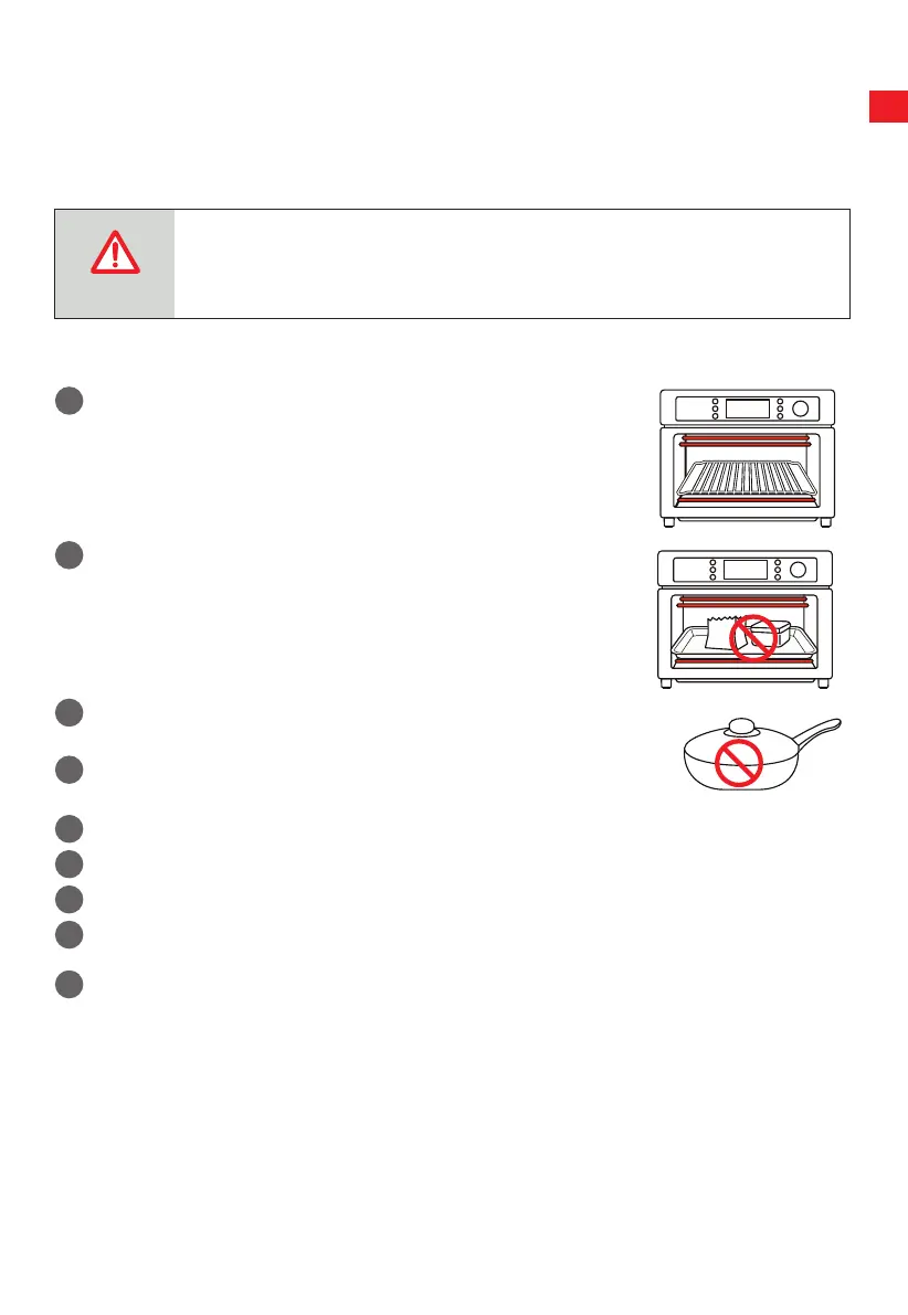 The food must be put into the baking tray to avoid the fire