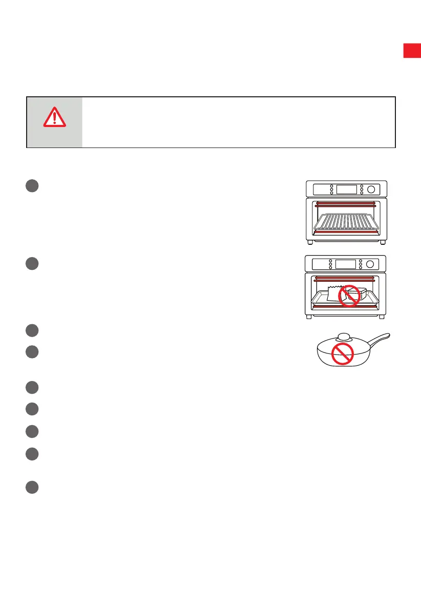 Đồăn phải được đặt vào khay nướng để tránh nguy cơ cháy