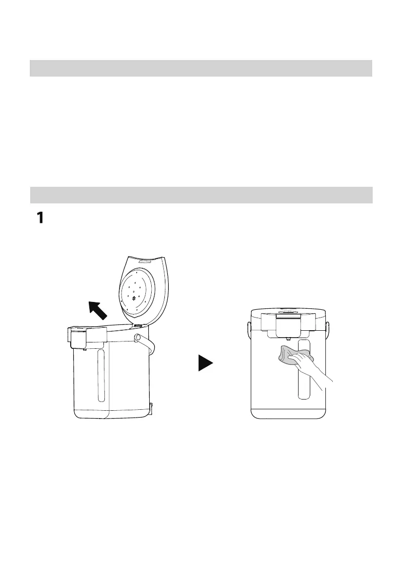 with a dry towel. Wipe the outside of the thermo pot with a wet towel that has been