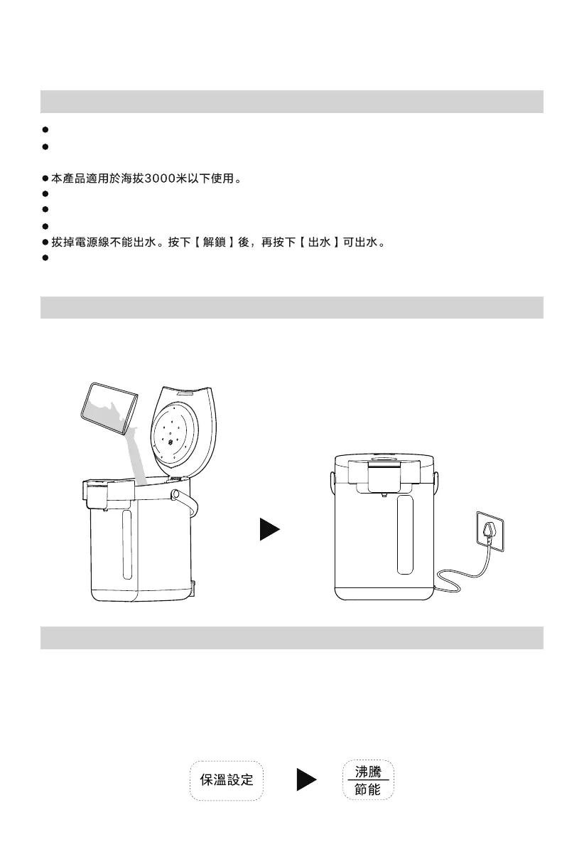溫度亮燈),選定後,再按[沸騰/節能]鍵。電熱水瓶沸騰除氯,溫度自然冷卻至選定溫度保溫。