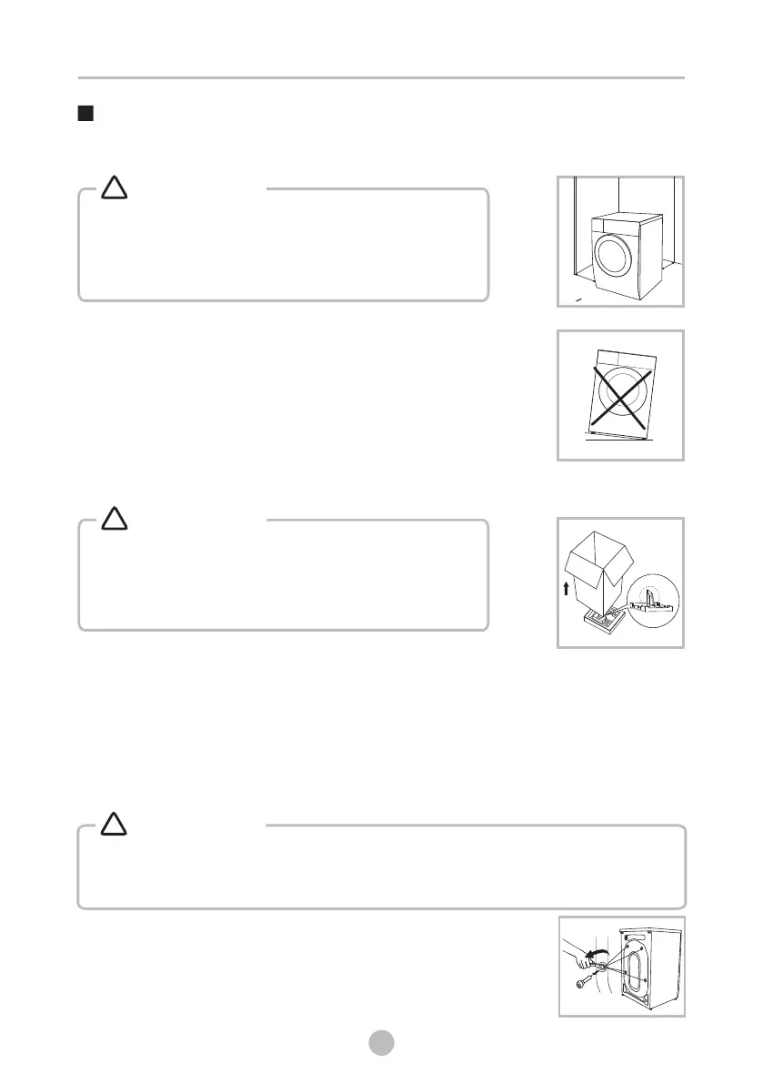 2. Lift the washing machine and remove the base packing.Make sure the small triangle