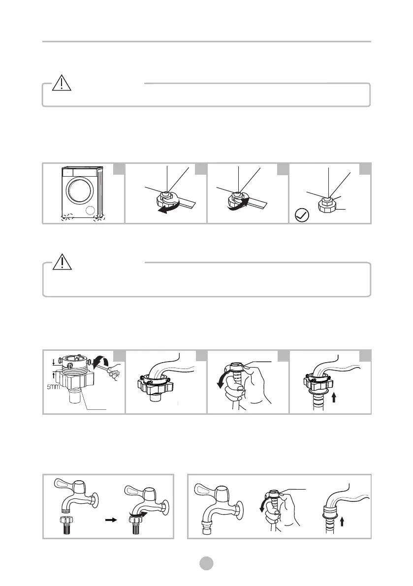 2.Loosen the lock nut and turn the feet until it closely contacts with the floor.