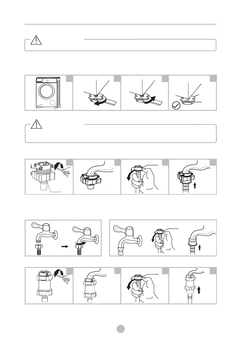 Connect the water inlet hose as indicated, there are three ways to connect the