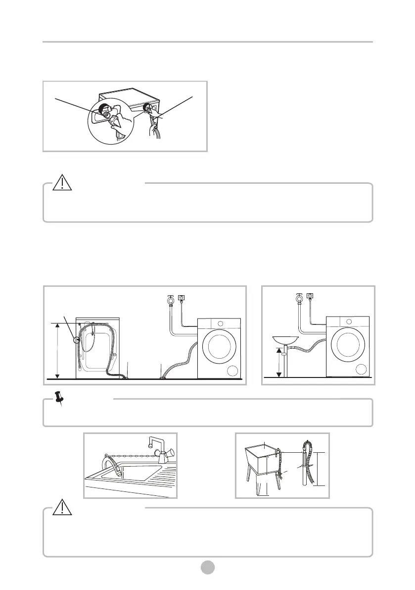 • Position drain hose properly, otherwise damage might result of water leakage.
