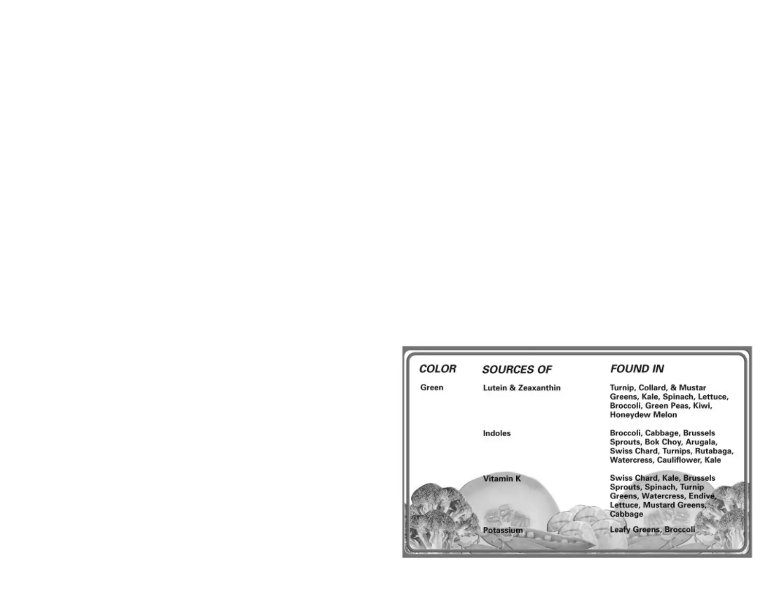 This section contains a chart that highlights different kinds of fruits/vegetables and what vita-
