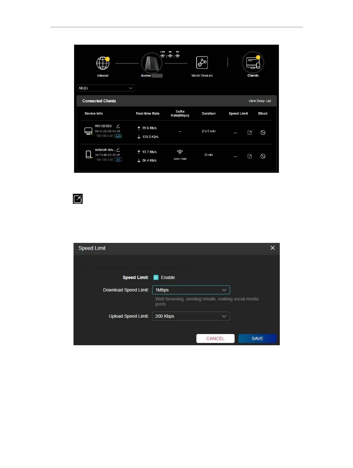 4. Click SAVE. The speeds of the device will be limited.