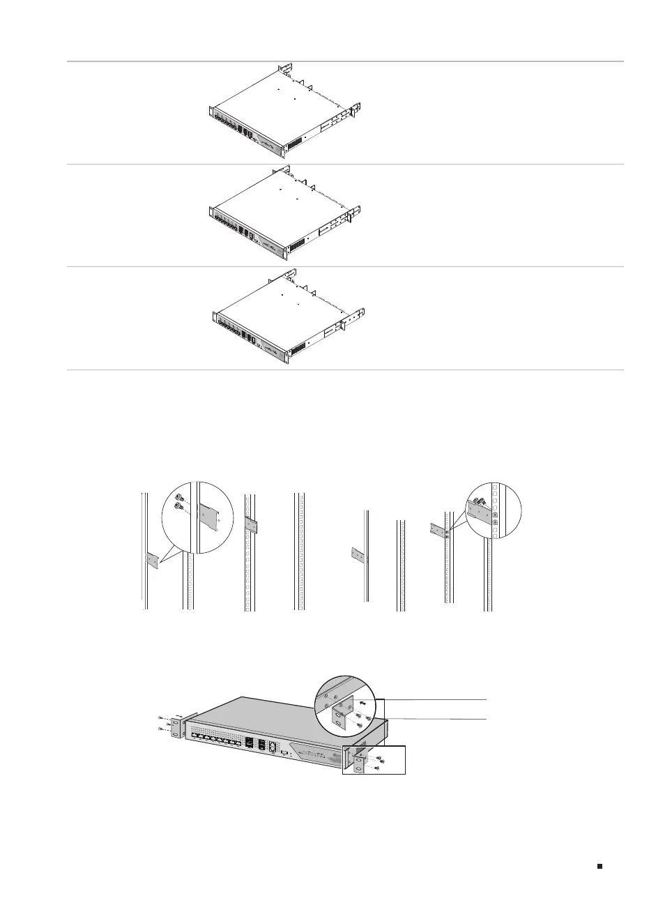 3. Secure the supplied rack-mounting brackets to each side of the device with supplied screws, as