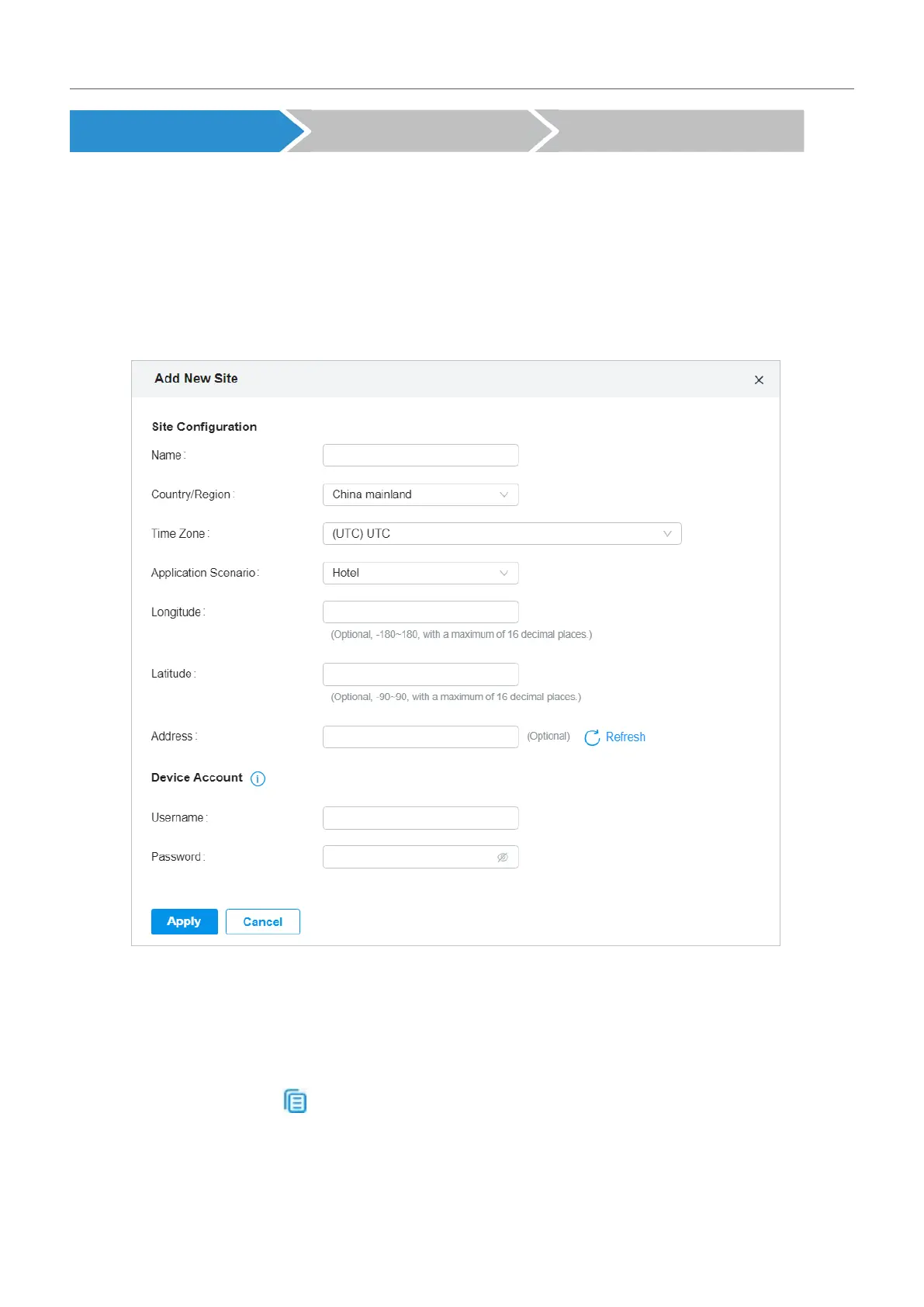 2. Enter a Site Name to identify the site, and configure other parameters according to where the