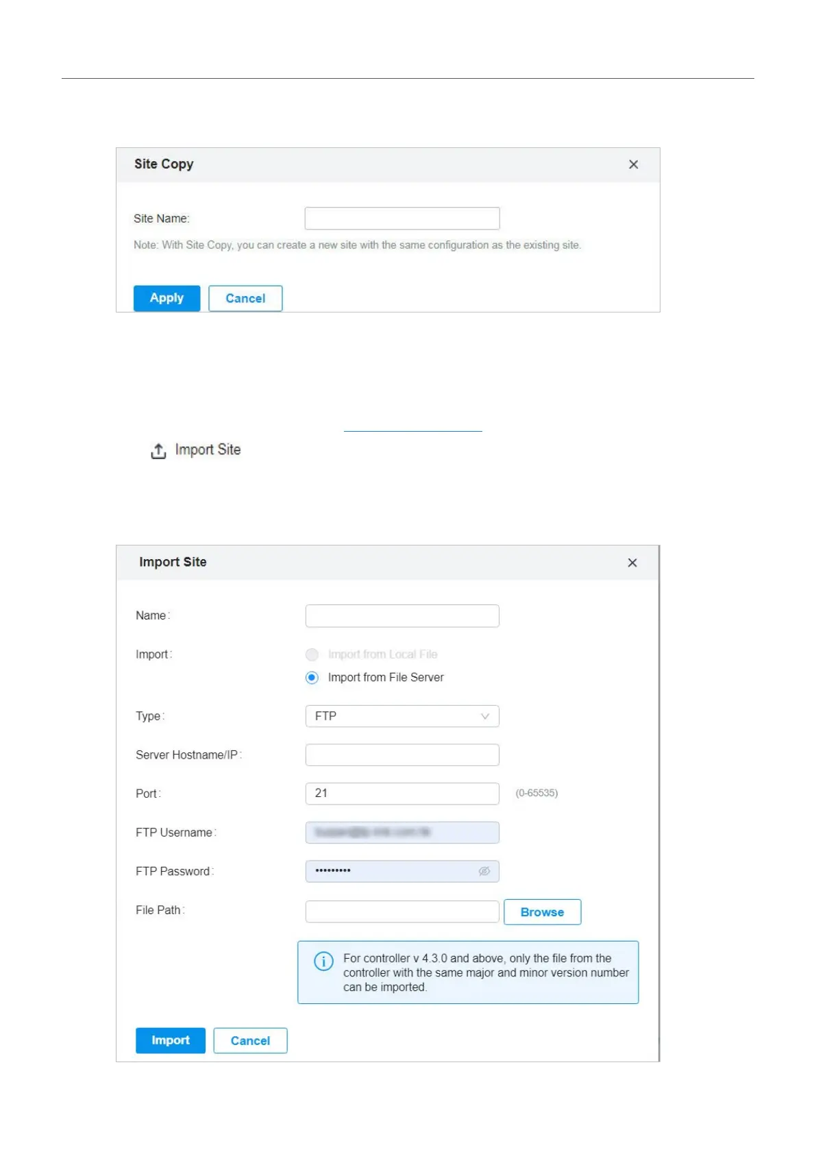 file of the old controller into the new. Before that, you need to export the site configuration file from
