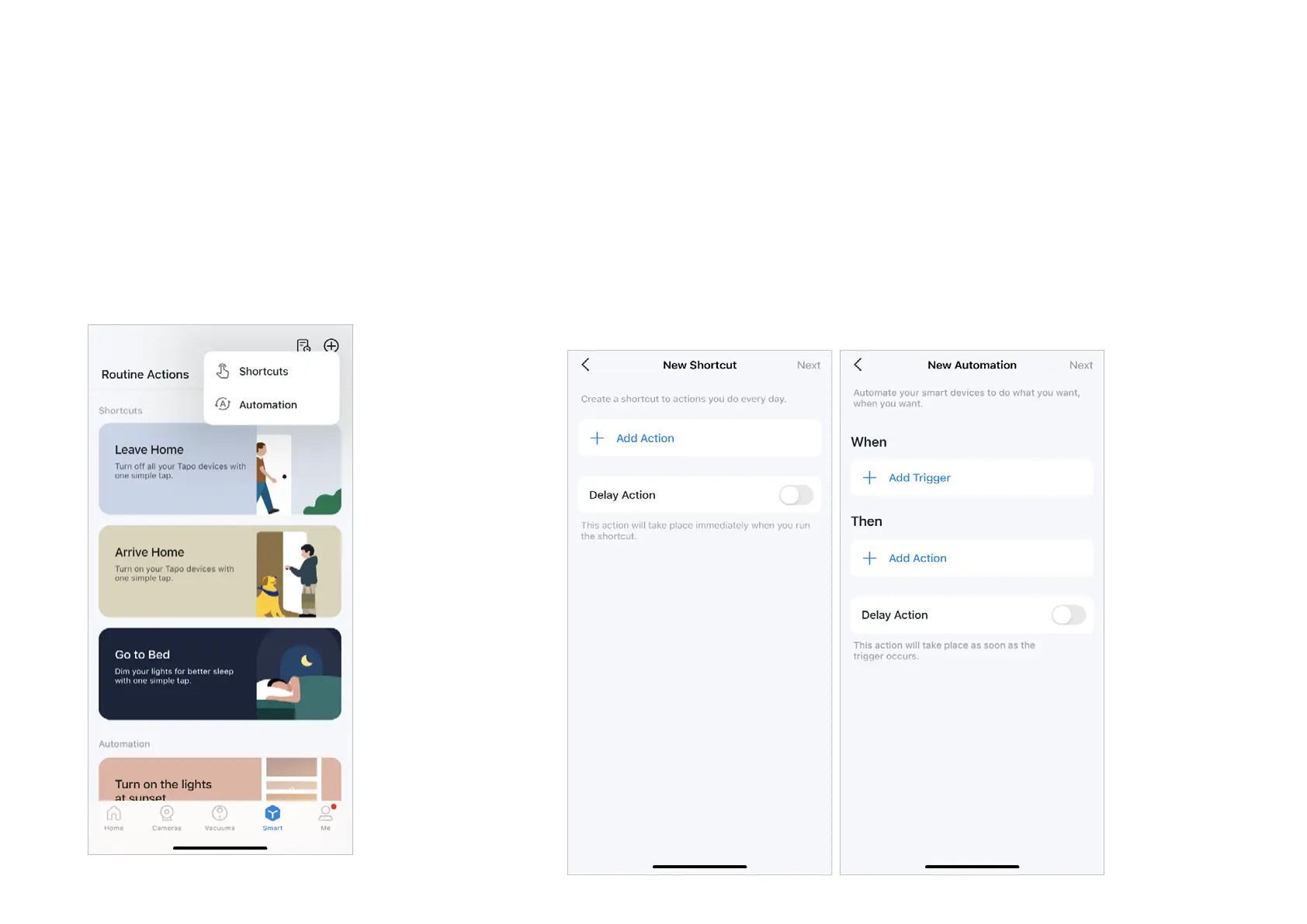 2. For Shorcuts: Tap + to add action like turning on the smart bulb.