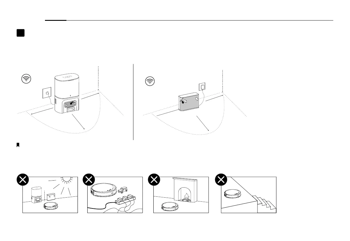 • Διατηρείτε πάντα το σταθμό βάσης αναμμένο, διαφορετικά η ρομποτική σκούπα δεν θα επιστρέψει αυτόματα. Και μην μετακινείτε συχνά το σταθμό βάσης.