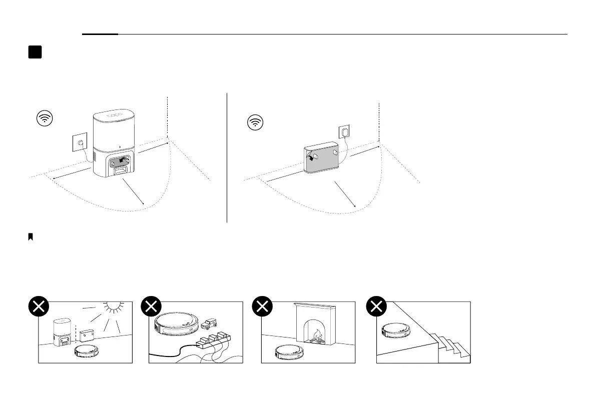 • Mantenha sempre a doca ligada, caso contrário, o vácuo do robô não regressará automaticamente. E não mova a doca com frequência.