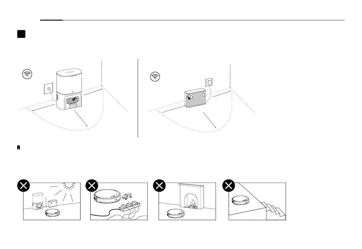 • Bağlantı istasyonunu her zaman açık tutun, aksi takdirde robot vakumu otomatik olarak geri dönmeyecektir. Ve yuvayı sık sık hareket ettirmeyin.