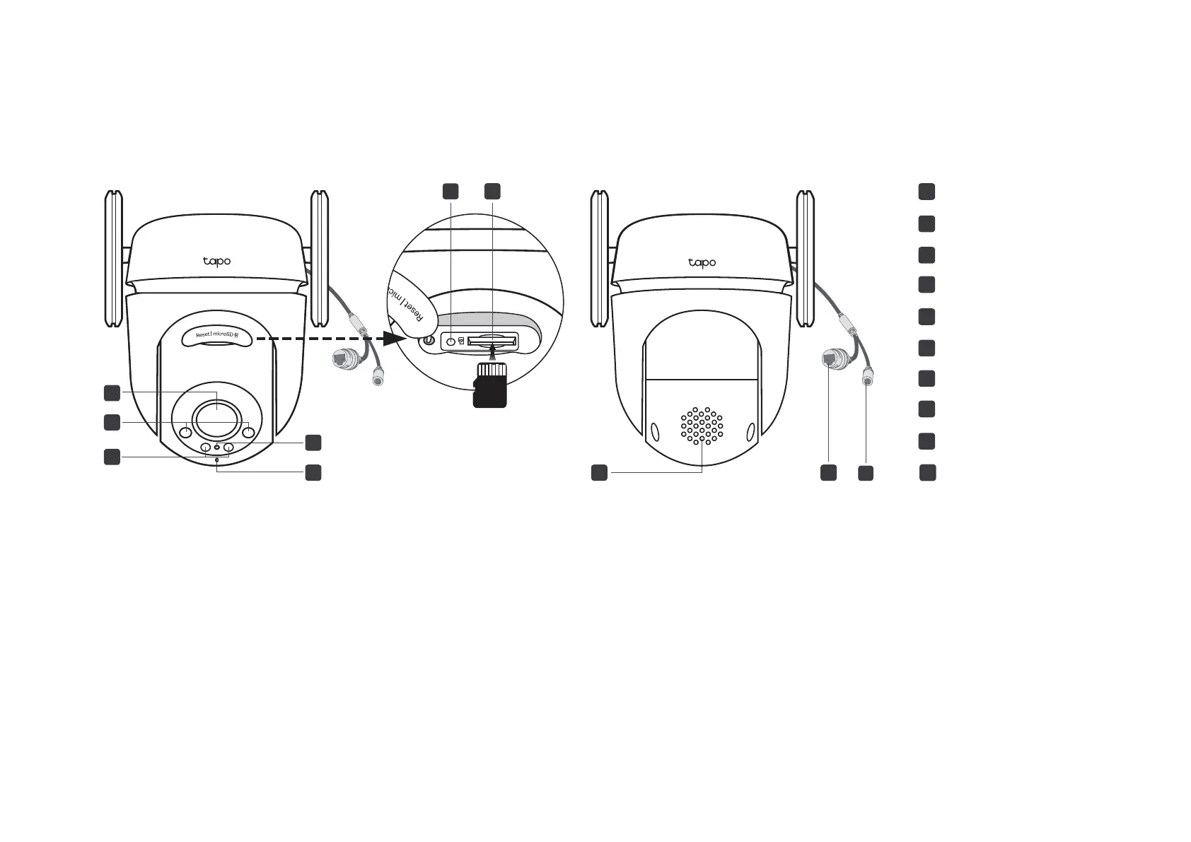 Open the silicone cover and insert a microSD card*. Initialize it on the Tapo app for local recording.