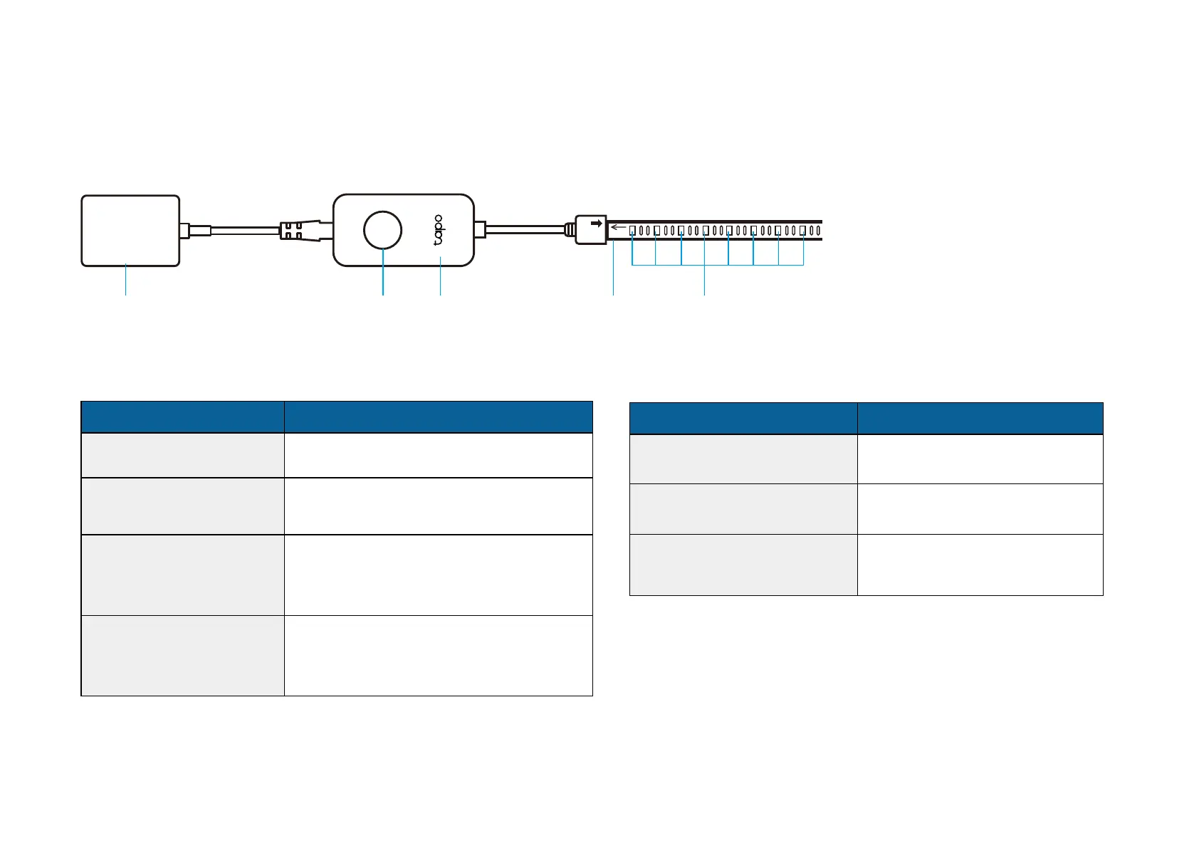 The Tapo Smart Light Strip includes a power adapter, a control button, a controller, and the Light Strip.