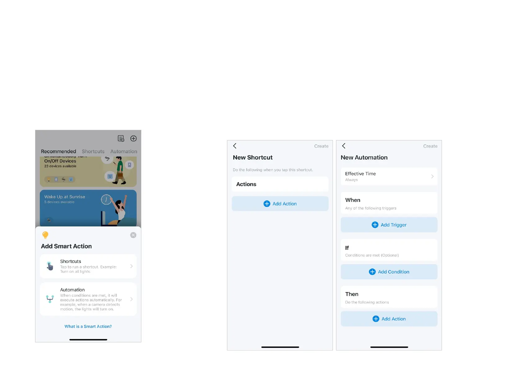 2. For Shorcuts: Tap + to add action like turning on the smart bulb.