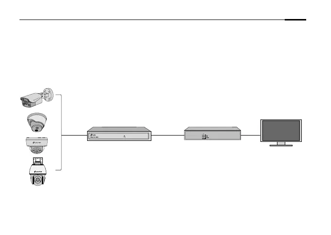Conectează camerele la aceeași rețea ca NVR-ul. (după cum se arată mai sus).