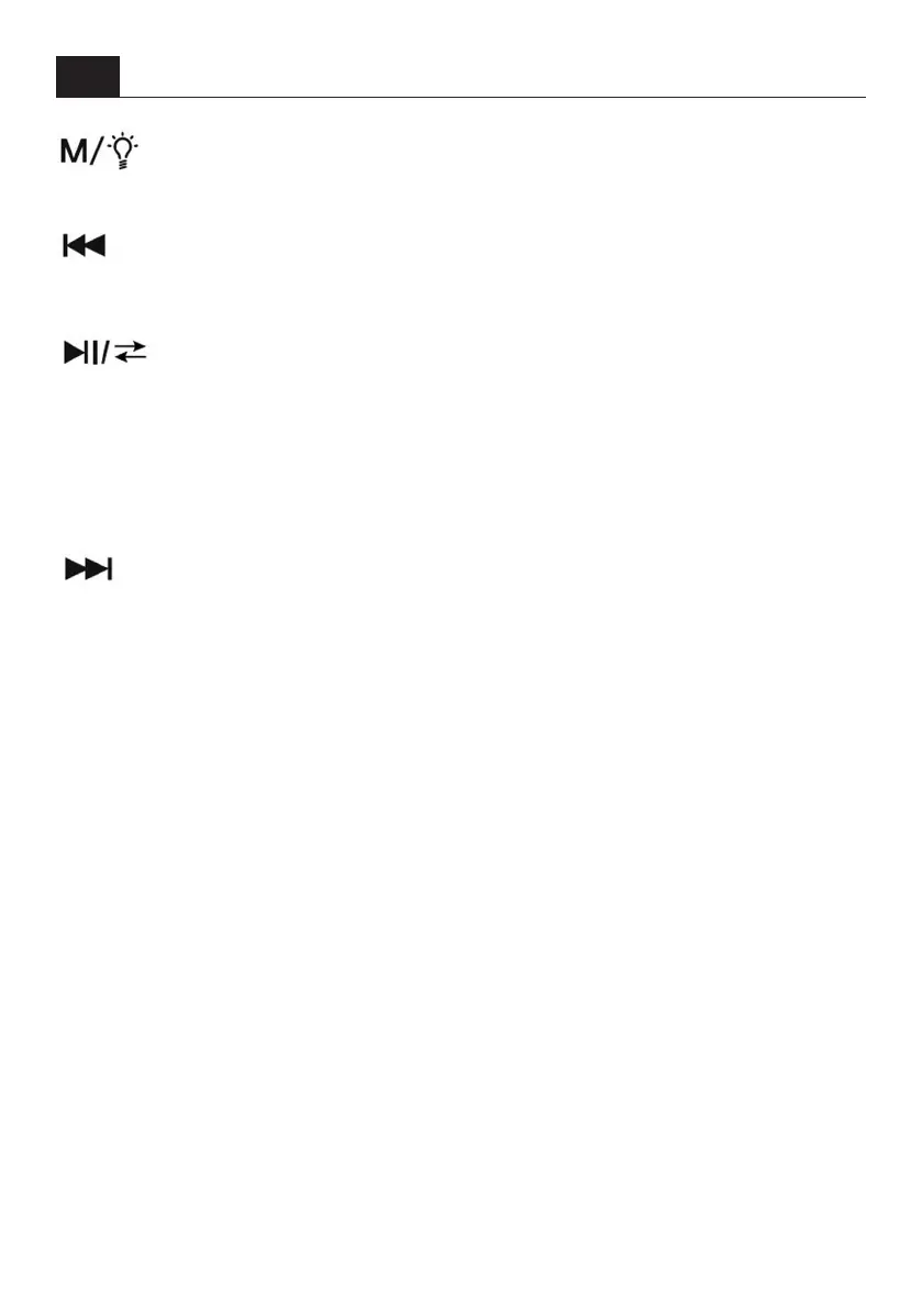 Krátke stlačenie na BT a USB, režim TF pre prehrávanie predchádzajúcej skladby, režim FM pre