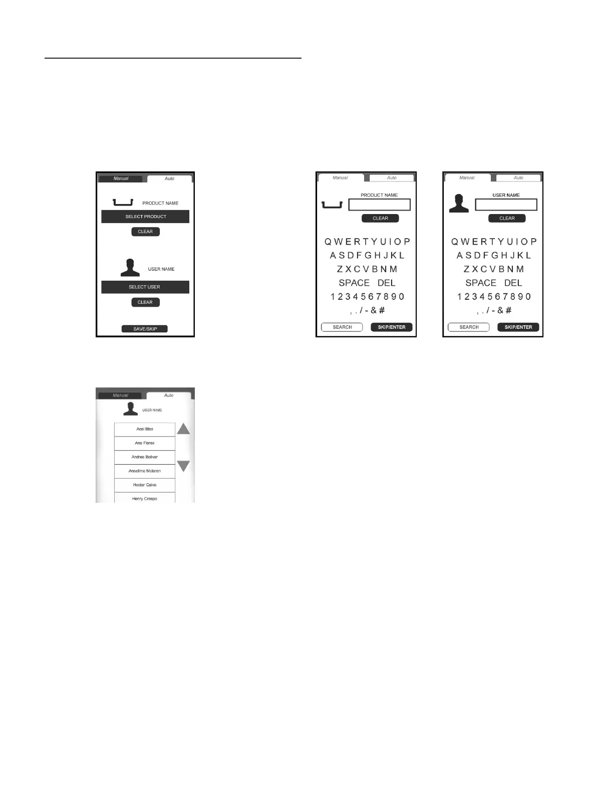 Product/Operator Name Entry Screen, shown below.