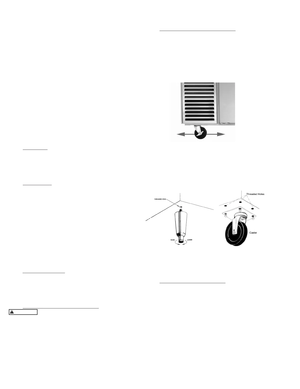 IV. d - INSTALLING LEGS OR CASTERS (cont’d):