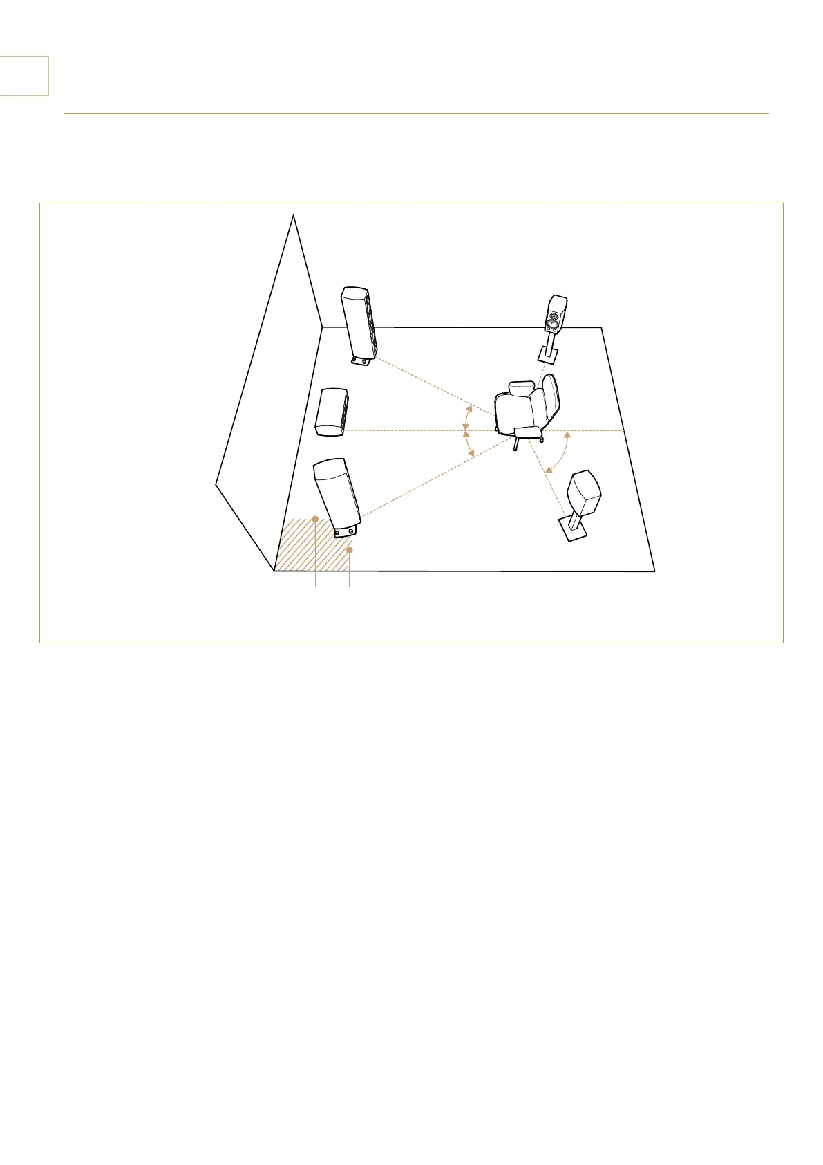 Pour placer les enceintes principales de manière optimale, veiller à respecter au mieux le schéma ci-dessus.
