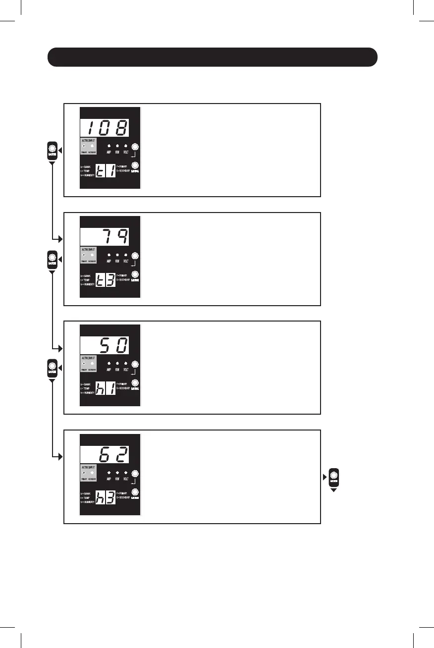 Note 1: Press Mode button to go to the next Display mode (vertical movement on this document). Note the Amps, kW or Volt sub-