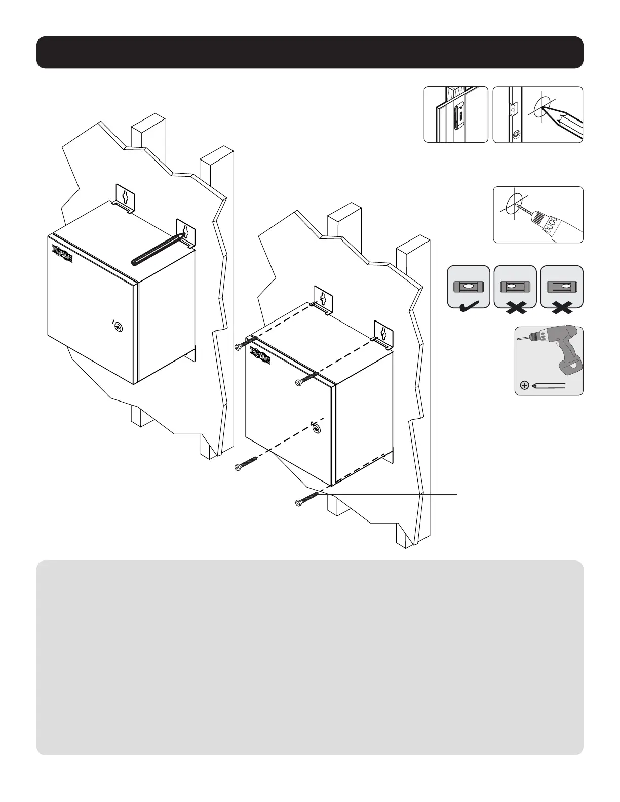 tornillos #10 x 2” o más grandes (no incluidos) para fijar el gabinete en su lugar.