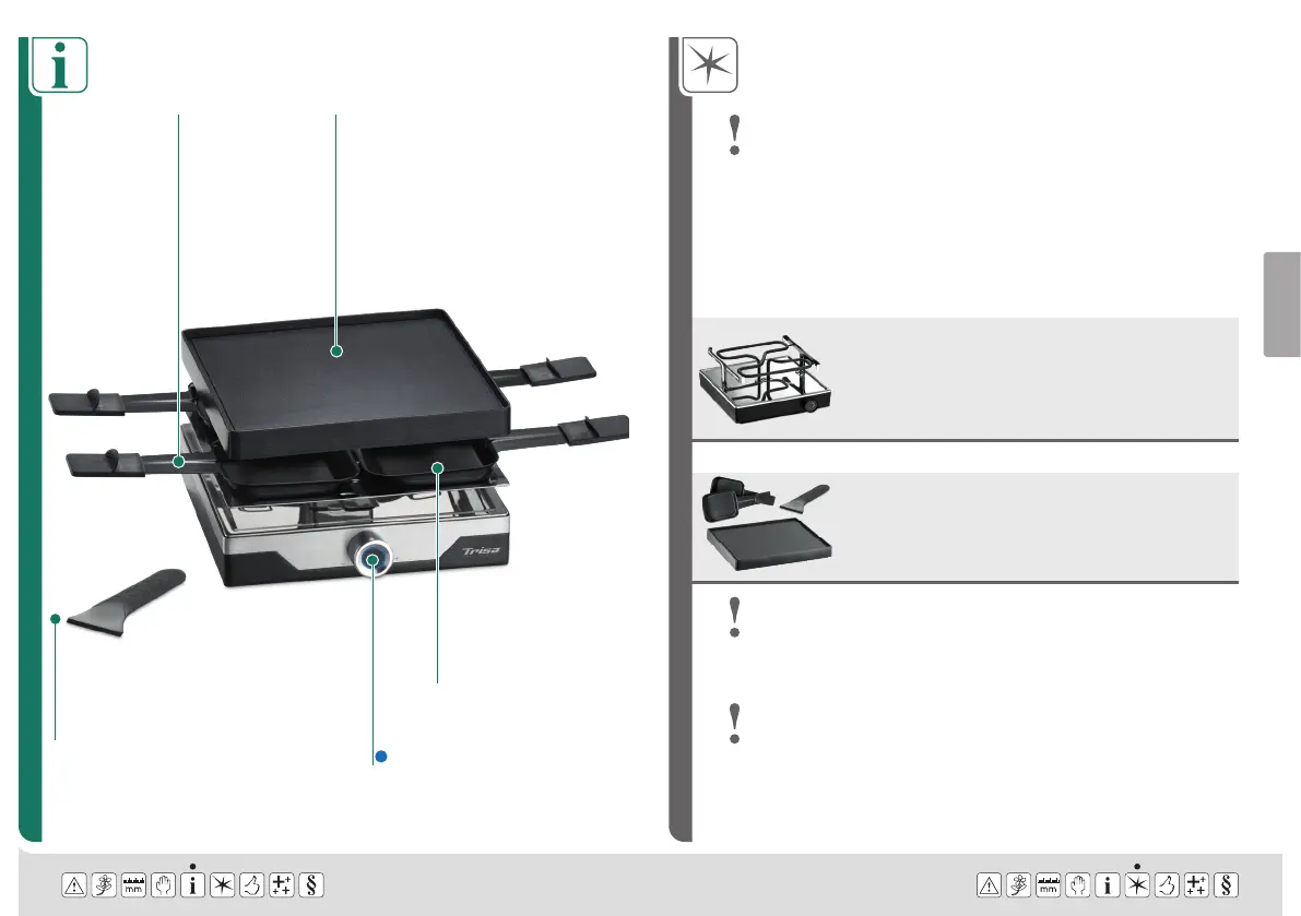 Grillplatte und Pfännchen nie für längere Zeit im Wasser lassen.