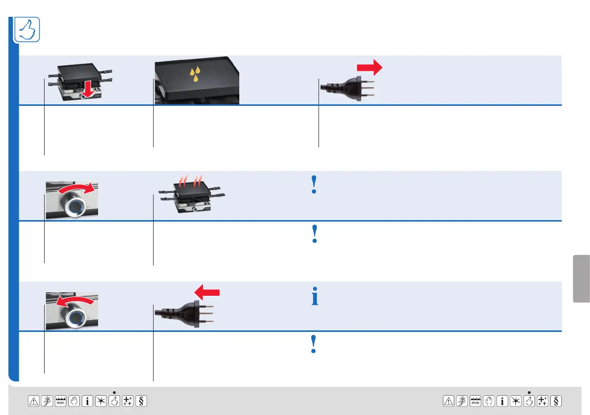 Kullanılmış pişirme kaplarını / ıspatulaları asla ızgara plakası üzerine koymayınız – gıda maddesi artıkları yanar.