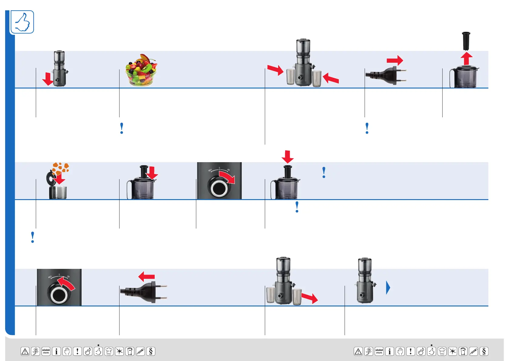 Ausschliesslich mit dem Stopfer entsaften. Verletzungsgefahr!