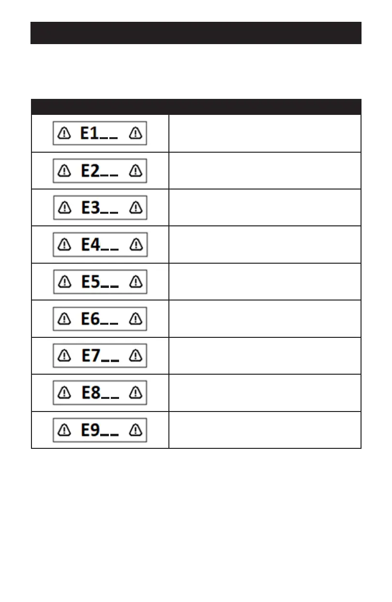 Faults are displayed as four digit codes with the first number (after “E”) relating to the affected subsystem. These faults may shut off