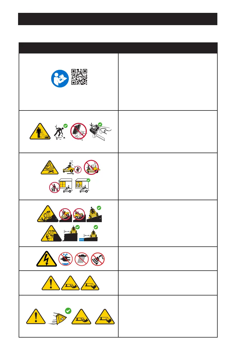 Cette page montre et décrit les symboles de sécurité POUVANT figurer sur cette tondeuse. Assurez-vous de lire, comprendre et