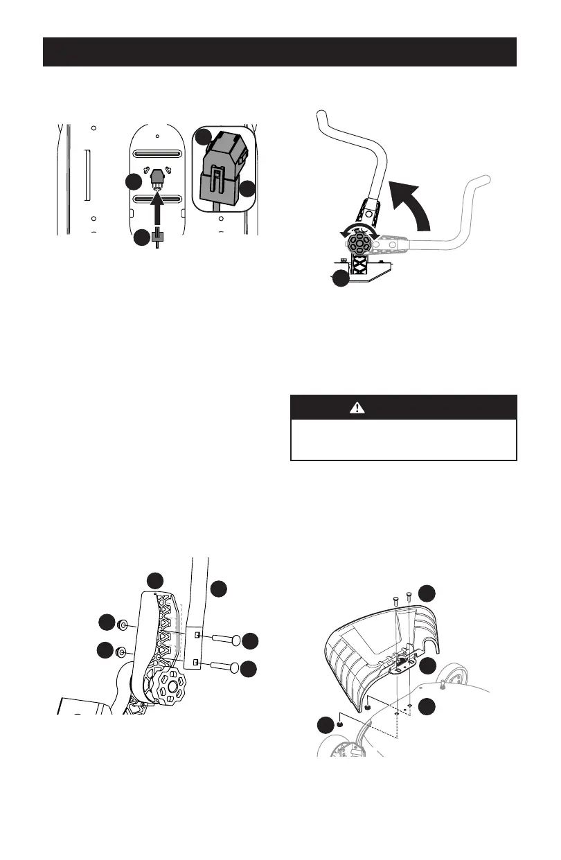 bride (d), fixez le déflecteur de goulotte au plateau de coupe