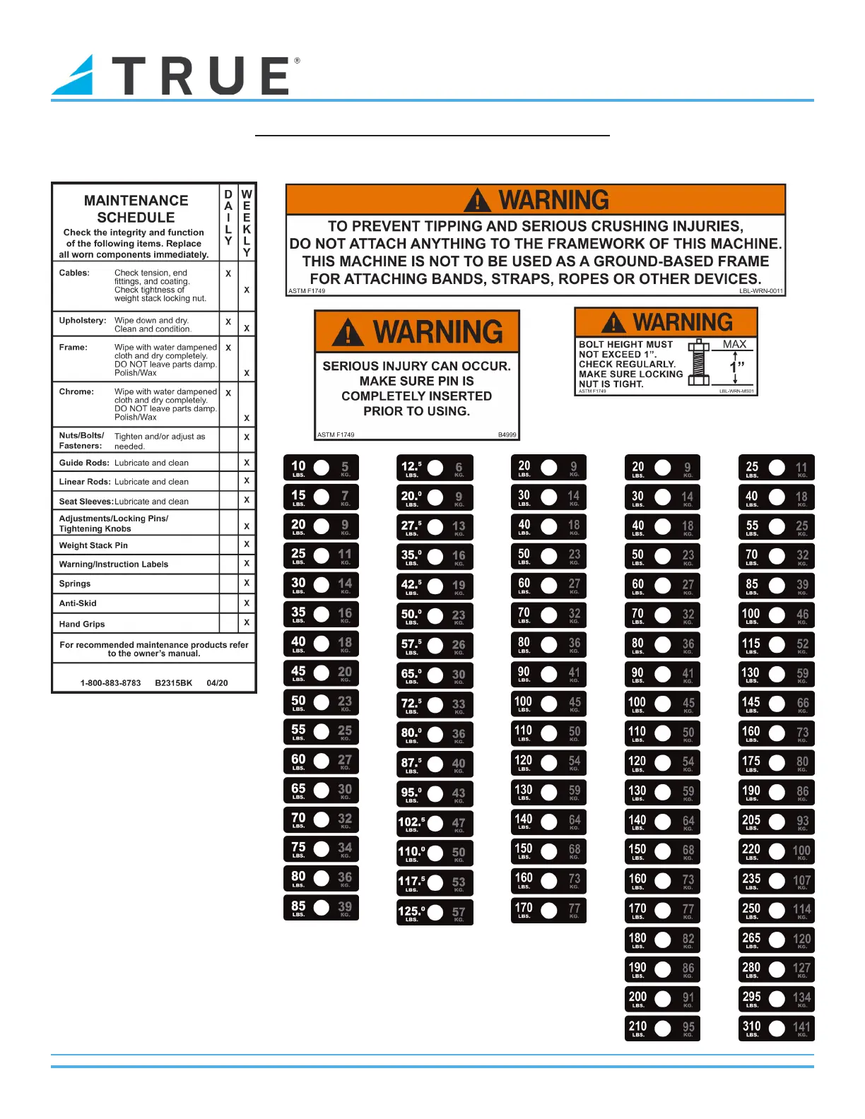 True Fitness Technology • O’Fallon, MO • Phone: 800-426-6570/636-272-7100 • Truetness.com
