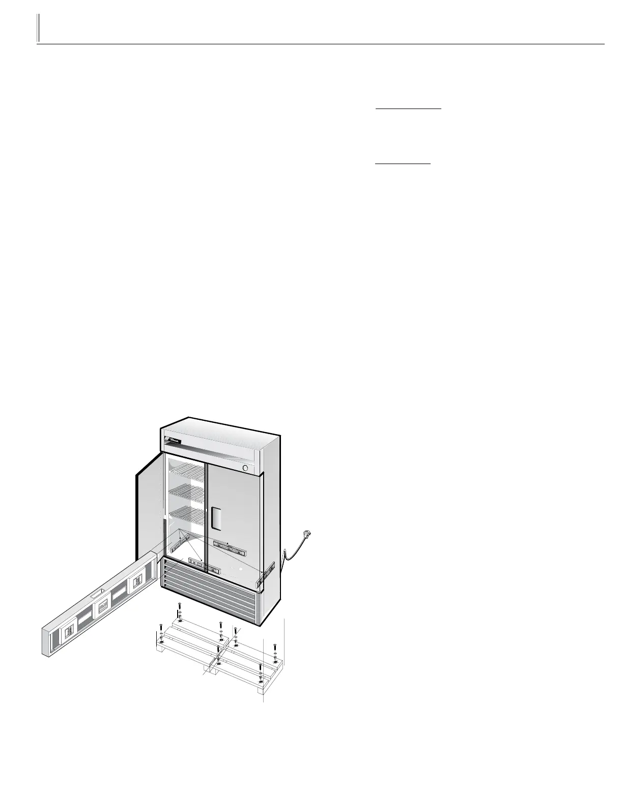cooler). Level cabinet.