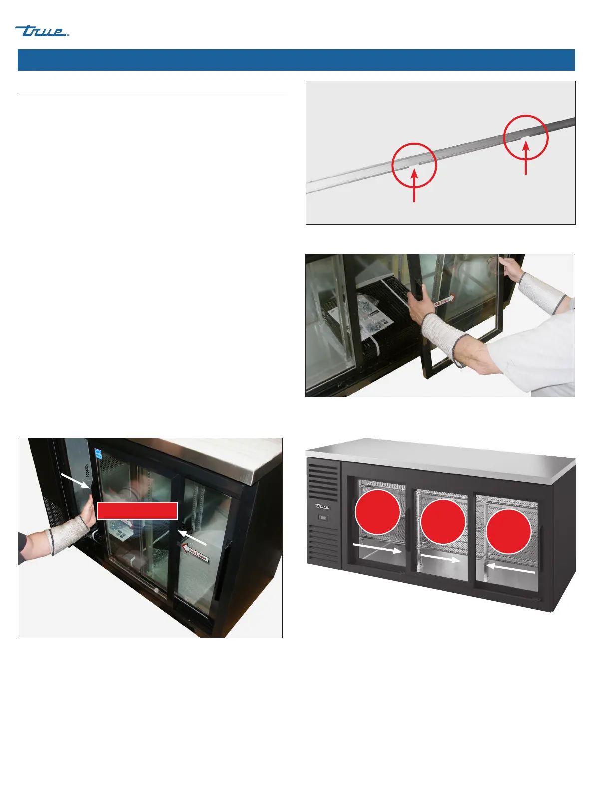 Fig. 4. Three-Door Units: Move the doors as directed to remove doors from channel.