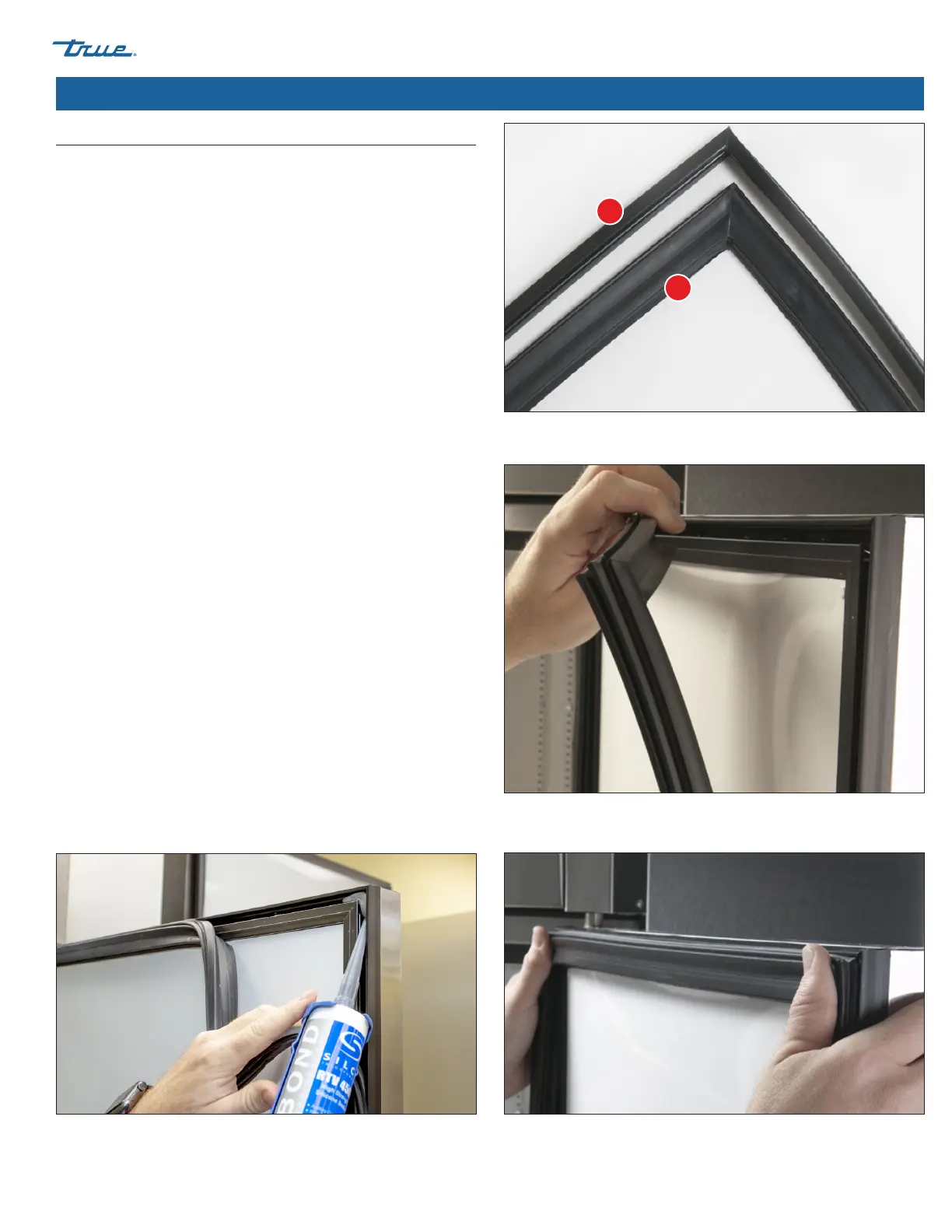 2. Apply silicone to each corner of the door/gasket channel. See