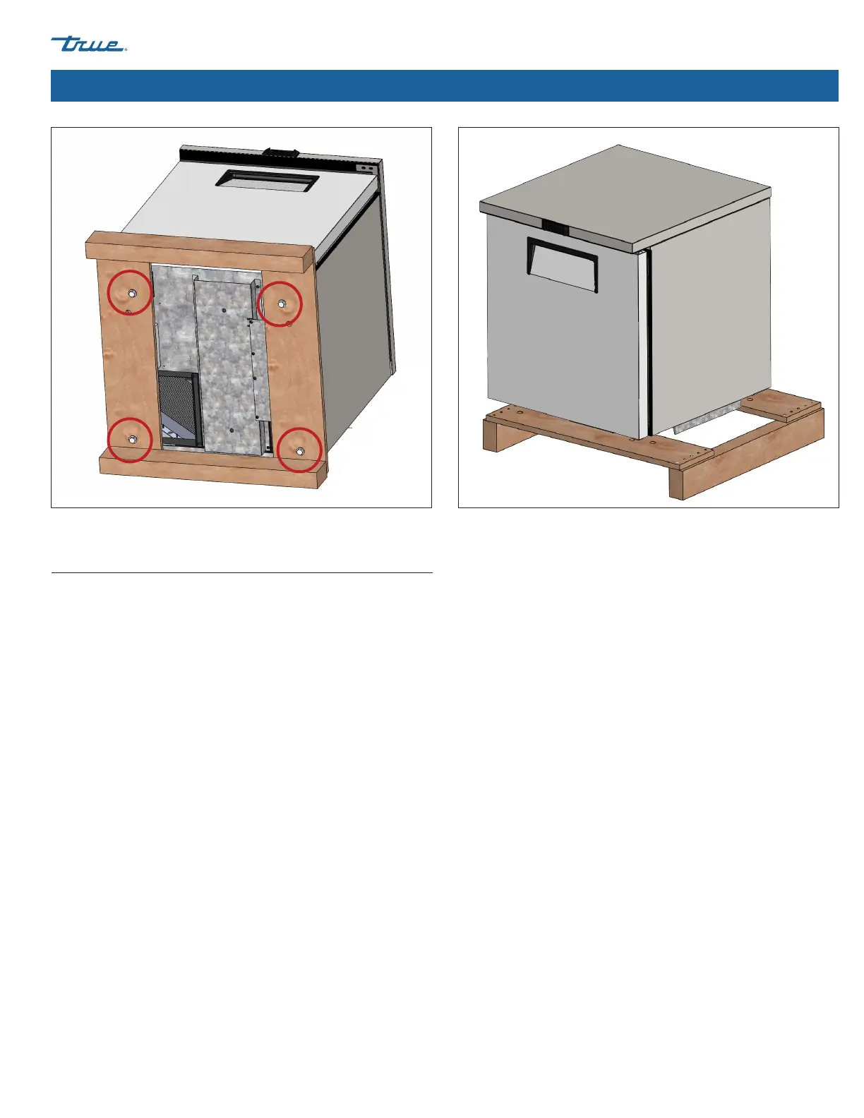 Fig. 3. Remove all shipping bolts. Fig. 4. Rotate cabinet on skid to install leveling legs or castors.