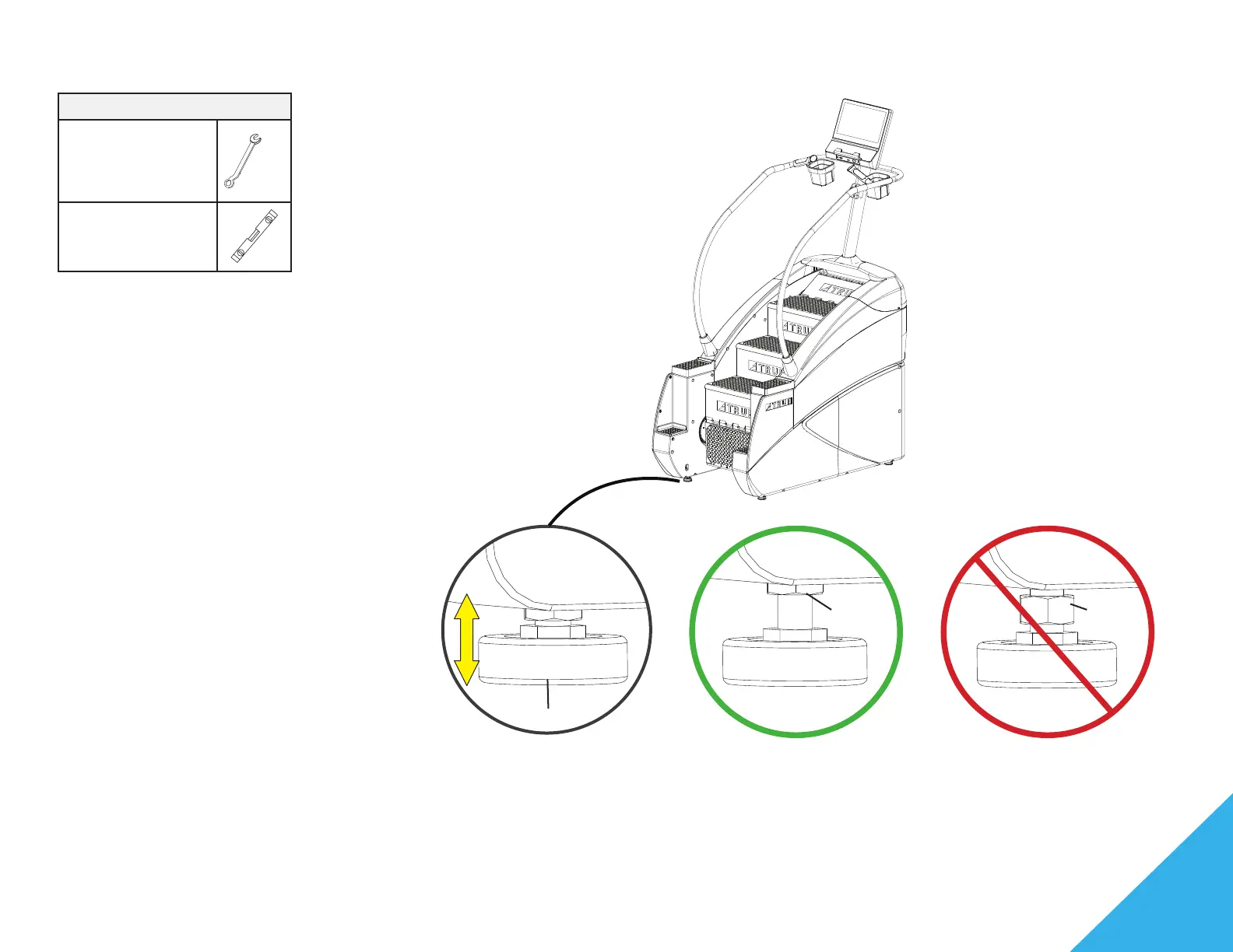 IMPORTANT! Do not adjust the leveling feet to such a height that they