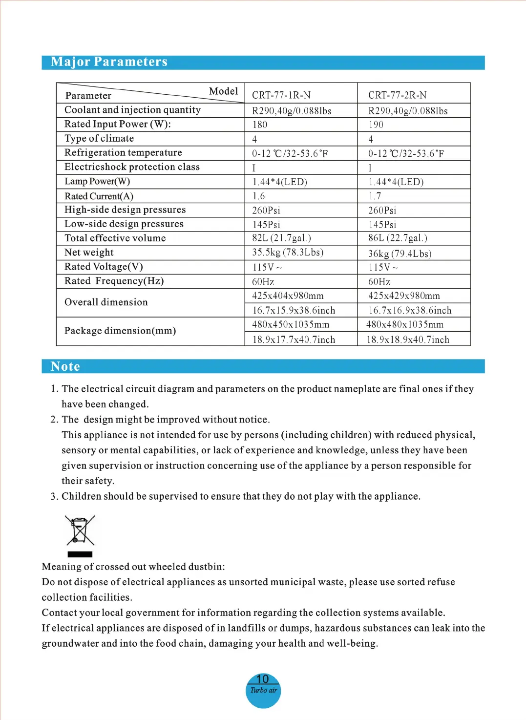 Bekijk gratis de handleiding van Turbo Air CRT-77-1R-N, stel vragen en lees de antwoorden op veelvoorkomende problemen, of gebruik onze assistent om sneller informatie in de handleiding te vinden of uitleg te krijgen over specifieke functies.