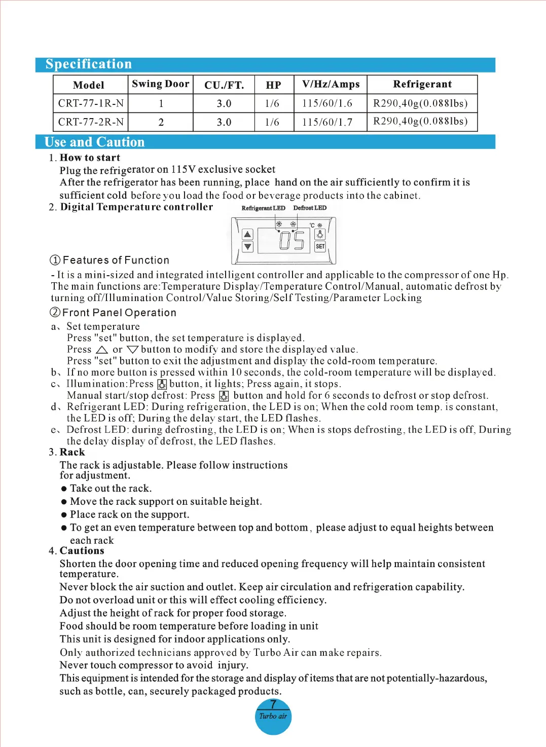 Turbo Air CRT-77-1R-N handleiding