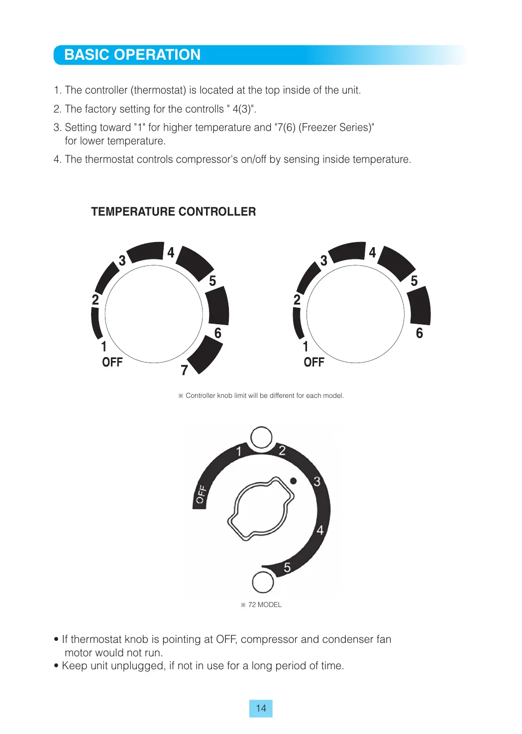 3. Setting toward "1" for higher temperature and "7(6) (Freezer Series)"
