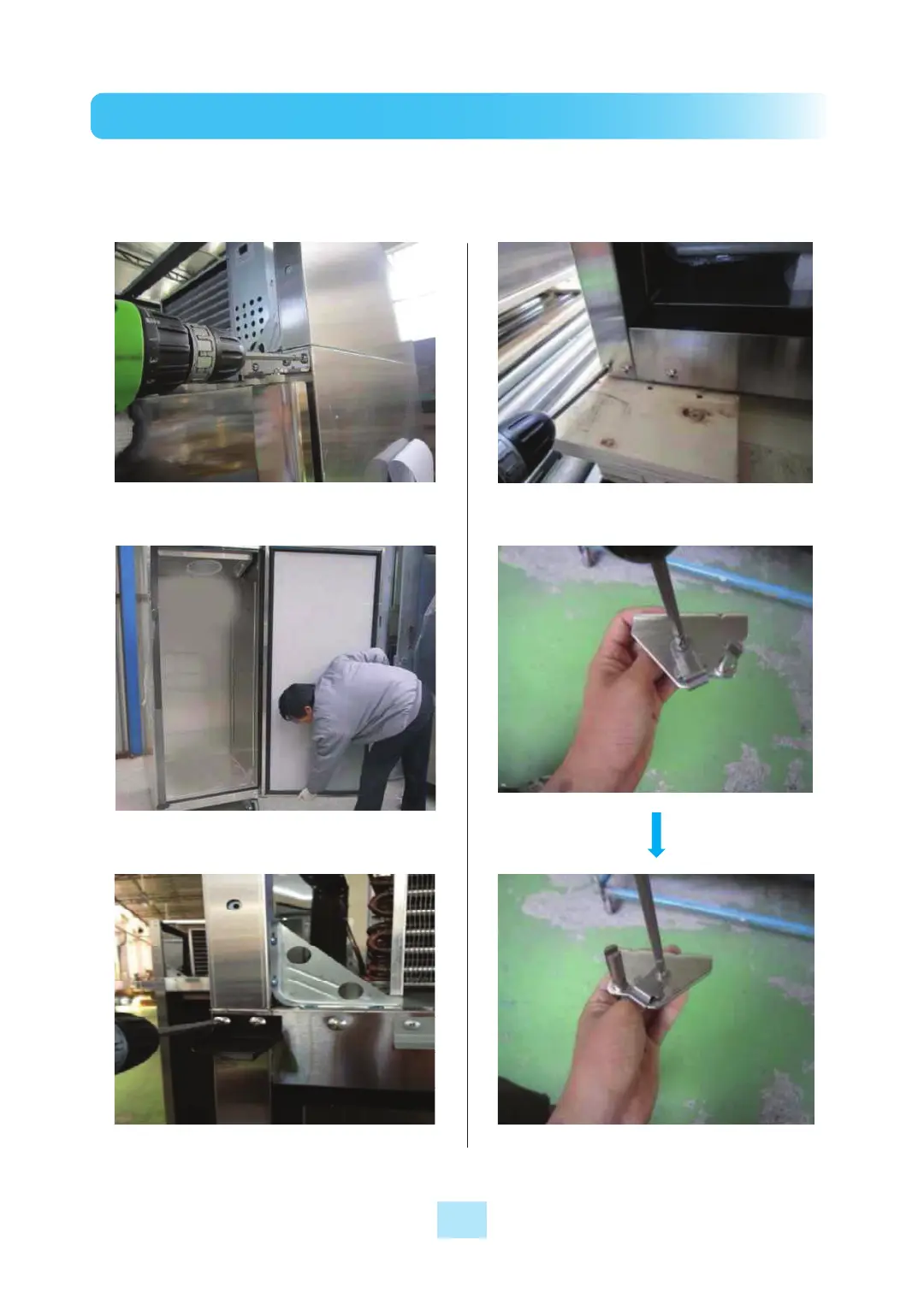 C-1. Disassemble the top hinge (left). D. Screw stopper plate on top hinge (right).