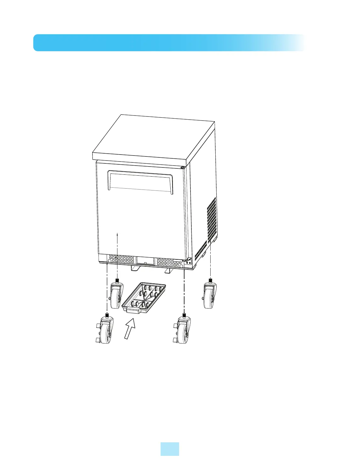 2) Use the caster shims to level the cabinet, if necessary, by inserting them