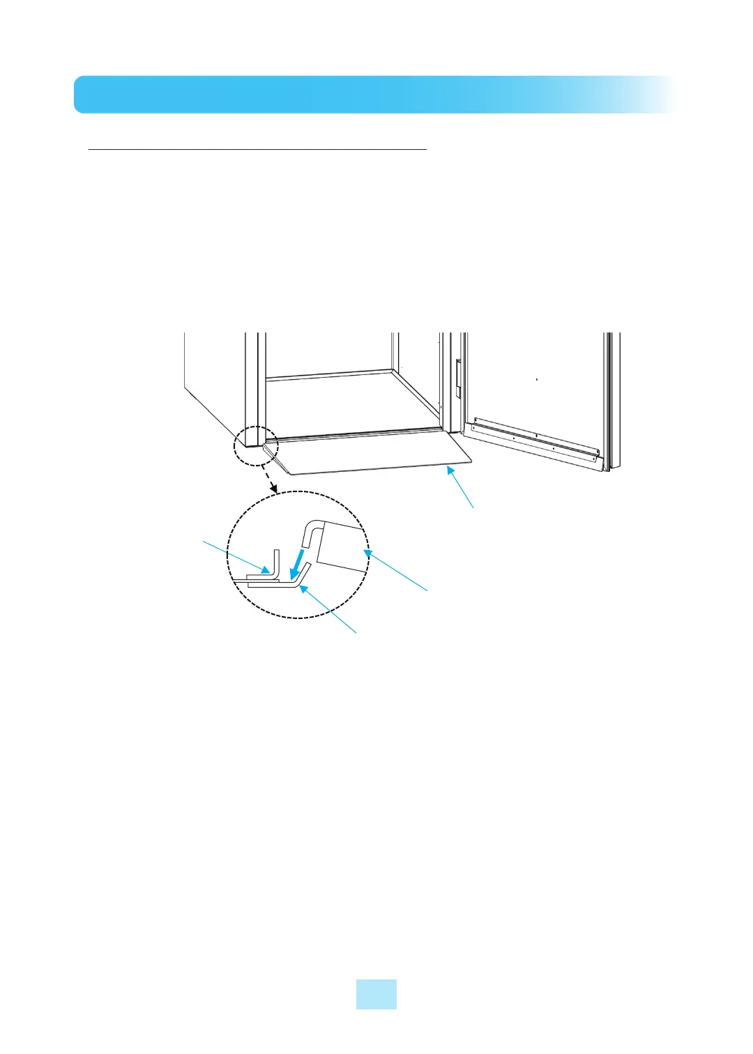 Center the ramp respect to the Roll‐In Cabinet. Then the installation process is