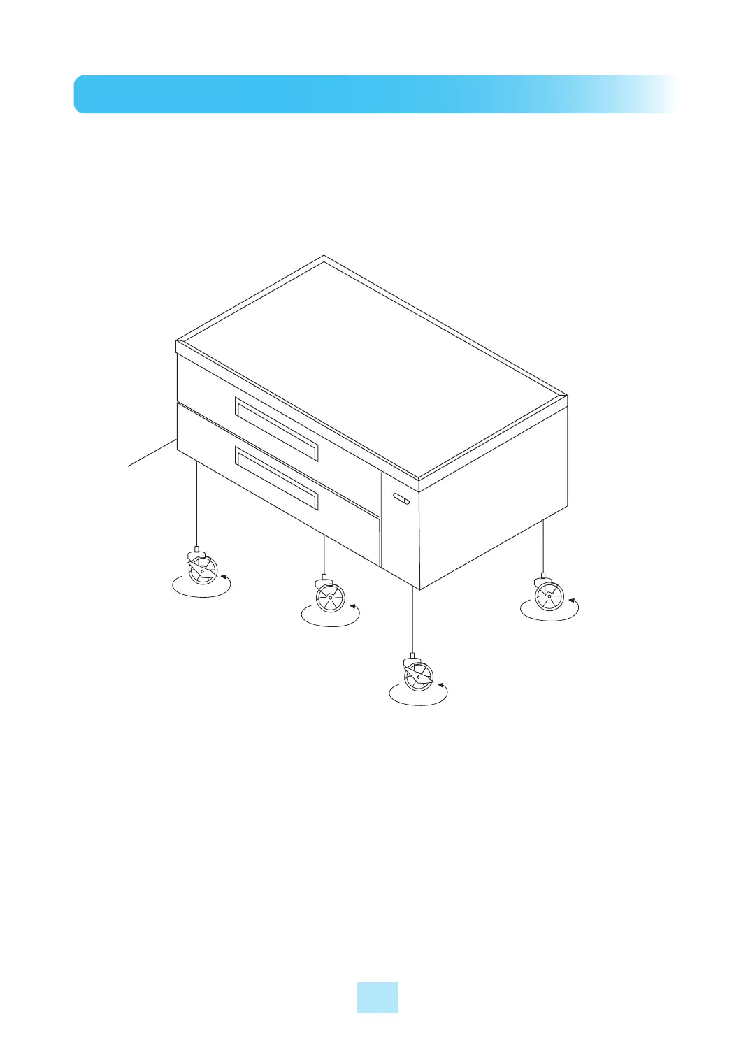 2) Use the caster shims to level the cabinet, if necessary, by inserting them